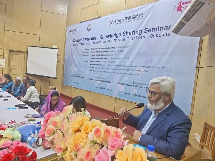 আজ মঙ্গলবার (০৭ এপ্রিল, ২০২৬) সকাল ১০টায় শাহজালাল বিজ্ঞান ও প্রযুক্তি বিশ্ববিদ্যালয়, সিলেটে এসইওকে হেলথকেয়ার এবং আমরা নারী যৌথ আয়োজনে ‘ক্যান্সার সচেতনতা জ্ঞান বিনিময়: প্রাথমিক শনাক্তকরণ, প্রতিরোধ এবং আধুনিক চিকিৎসা পদ্ধতি’ শীর্ষক সেমিনার বিশ্ববিদ্যালয়ের মিনি অডিটোরিয়ামে অনুষ্ঠিত হয়।